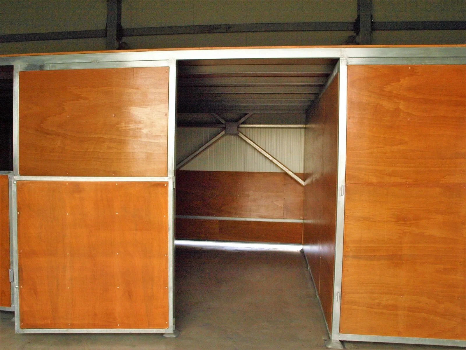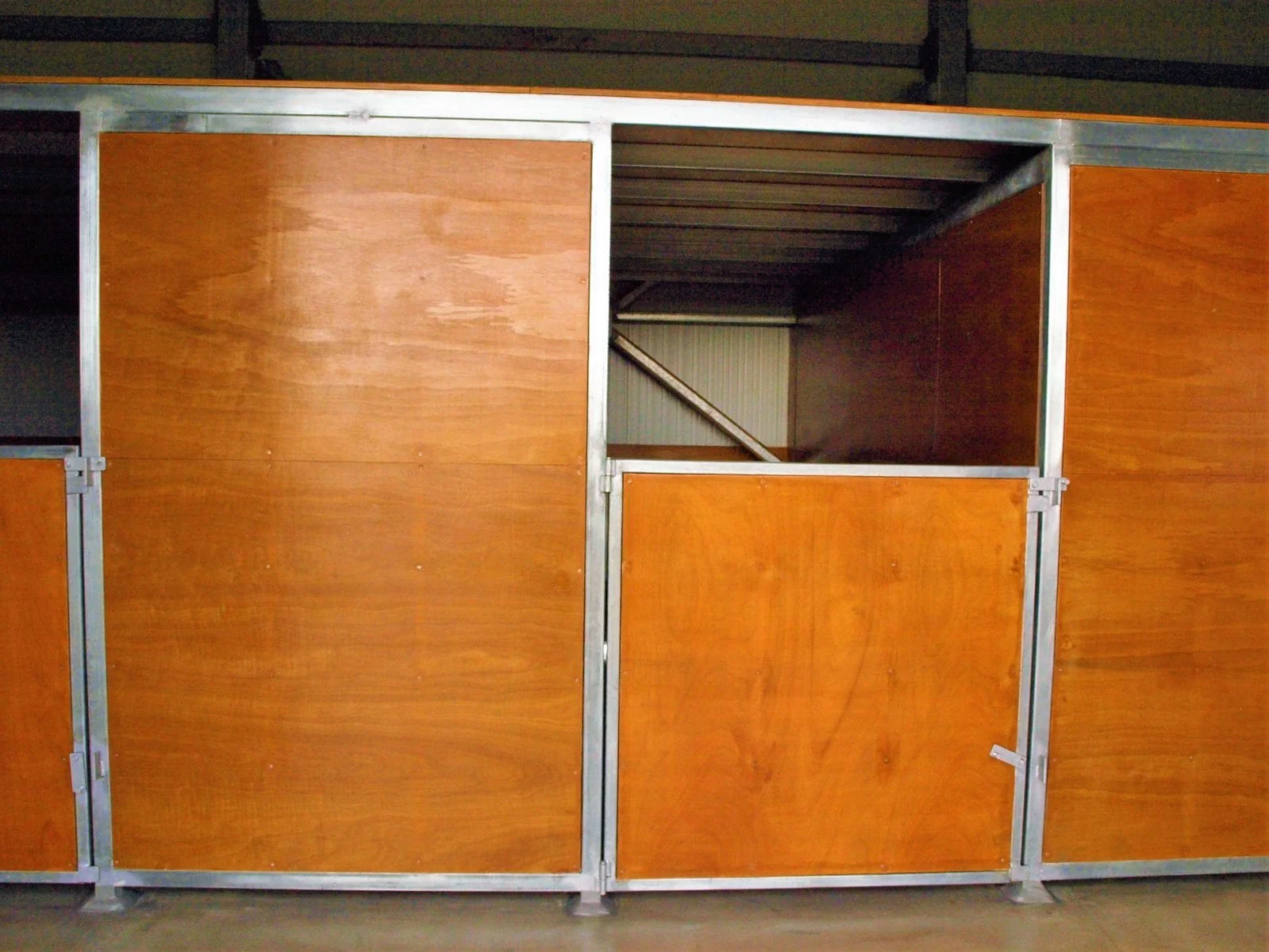 Για την κατασκευή των εσωτερικών χωρισμάτων του στάβλου χρησιμοποιήθηκε γαλβανιζέ χάλυβας και ξύλο κόντρα πλακέ.