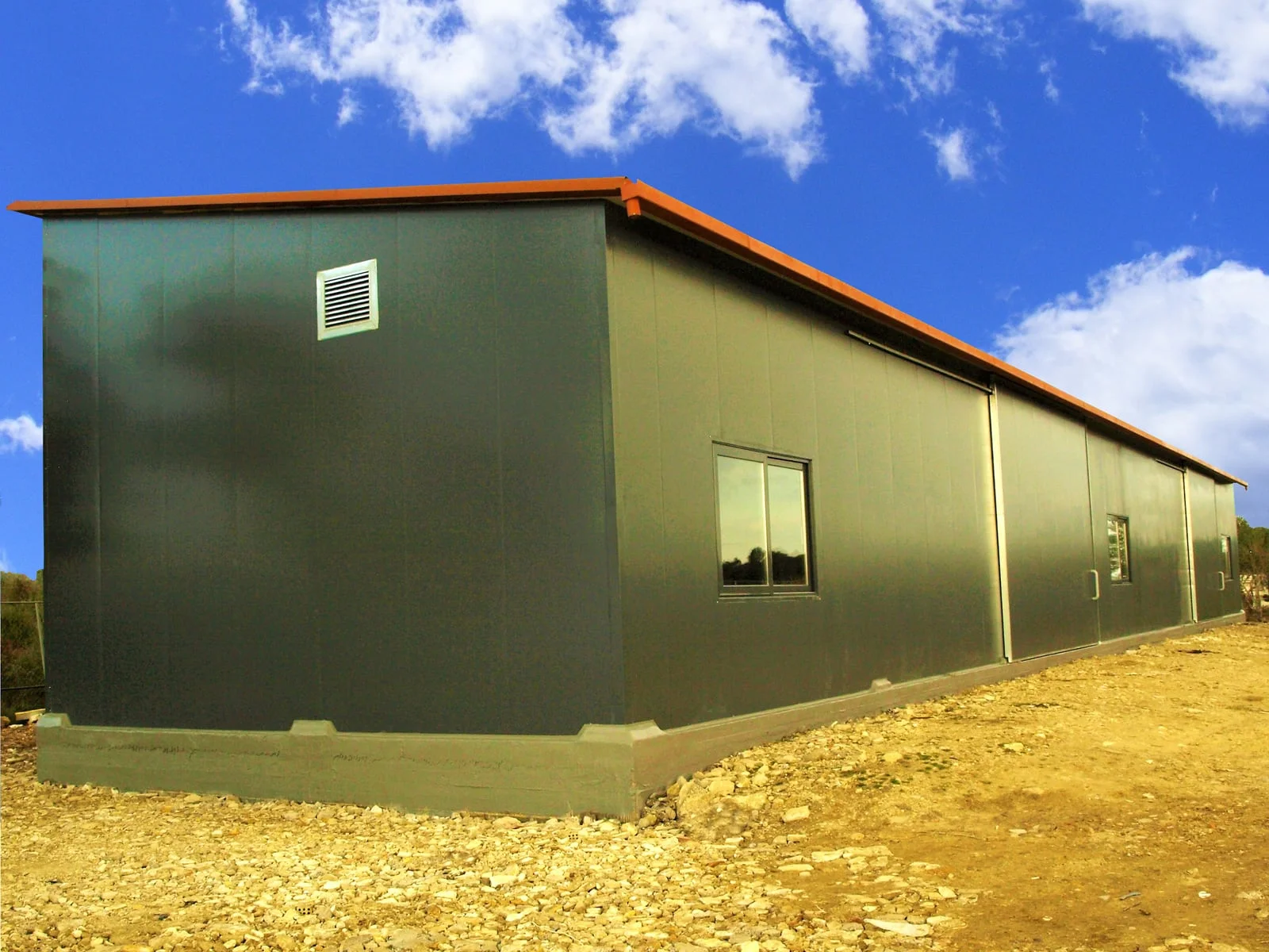 Μεταλλικός γαλβανιζέ σκελετός και επικάλυψη από πάνελ πολυουρεθάνης χρώματος γκρι σκούρο.